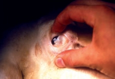 Als Beispiel möchten wir die Schadwirkung des roten, gedrehten Magenwurmes hervorheben. Bei einer Anzahl von ca. 1.000 Würmern, welche in der Labmagenschleimhaut des Tieres Blut saugen, kann man von einem täglichen Blutverlust von 15 ml ausgehen - das entspricht ungefähr der Menge eines Schnapsglases. Während niederschlagsreicher und warmer Sommerwitterung kann sich eine Infektion mit Weideparasiten bis zu 100.000 und mehr Parasiten pro Tier aufschaukeln. Durch diese enorme Schädigung kommt es bei den betroffenen Tieren zu Blutarmut, schweren Entzündungen im gesamten Magen-Darm-Trakt, zur Steigerung der Herz- und Atemfrequenz und zur Ausbildung von Wasseransammlungen an Hals und Kopf der betroffenen Tiere [ Ödeme (siehe Foto) ]. Diese Krankheitszeichen lassen sich bei genauerem Untersuchen der Herdentiere leicht erkennen und sollten sofortiges Behandeln durch einen Tierarzt nach sich ziehen. Der wirtschaftliche Schaden entsteht durch die Verringerung der durchschnittlichen Tageszunahmen, durch die erhöhte Krankheitsanfälligkeit und durch die Ausfälle!