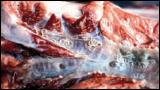 Der Nachweis der Eier im Kot bestätigt den Verdacht auf Lungenwurmbefall.Auch bei der Schlachtung kann durch Anschnitt der Bronchien ein Befall mit Lungenwürmern diagnostiziert werden (siehe Foto). Der Landwirt sollte sich über den Parasitenbefall informieren. |