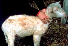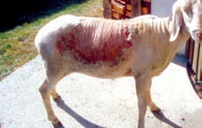 Bei Schafen kann die Räude zum totalen Wollausfall führen. Tritt der Räudebefall und damit der Wollverlustwährend der Sommermonate auf, so sind die Tiere ungeschützt der Sonnenstrahlung ausgesetzt (siehe Foto oben).Daher ist ein sofortiges Verbringen in eine Stallung anzuraten und mit einer Therapie zu beginnen. Zur eindeutigen Diagnose ist ein Hautgeschabsel zu entnehmen und mikroskopisch zu untersuchen.
