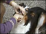 Verabreichung einer Wurmkur Die Tablette wird unter die Zunge gelegt